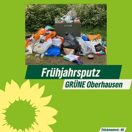 Die GRÜNEN beteiligen sich auch in diesem Jahr am stadtweiten Frühjahrsputz in Oberhausen. Die jährliche Aktion, zu der die Stadt Oberhausen aufruft, lebt vom freiwilligen Engagement zahlreicher Bürger*innen, die gemeinsam Müll in Parks, auf Grünflächen und an Straßenrändern sammeln.