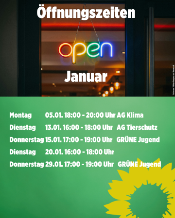Im Januar sind wir zu folgenden Öffnungszeiten für euch da: