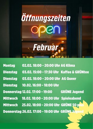 Im Februar sind wir zu folgenden Öffnungszeiten für euch da: